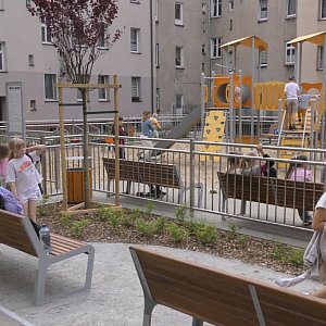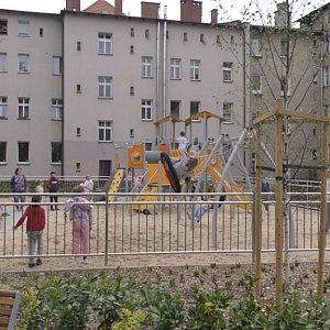 Na podwórku pojawiło się sporo ławek i plac zabaw. Zabrakło natomiast miejsc do parkowania pojazdów. Wjazd na ten teren możliwy jest tylko dla służb komunalnych i ratowniczych. Zmotoryzowaniu mieszkańcy Nowego Miasta nie są z tego powodu zadowoleni, ale muszą sobie jakoś radzić, parkując niekoniecznie bezpośrednio pod swoim budynkiem, bo gęsta zabudowa tej dzielnicy nie pozwala w pełni zaspokoić potrzeb kierowców.