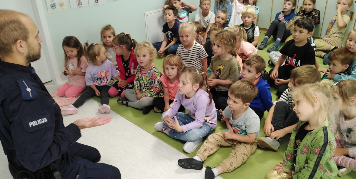 Spotkanie zakończyło się czymś wyjątkowym – dzieci wręczyły policjantowi własnoręcznie wykonaną, kolorową laurkę. Taki gest – prosty, szczery – pokazał, jak bardzo takie chwile zapadają najmłodszym w pamięć.