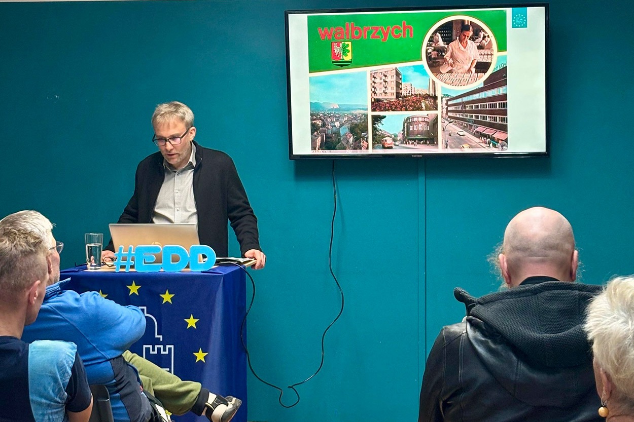 Drugi wykład, poprowadzony przez dr. Tomasza Nochowicza, przeniósł słuchaczy w świat wałbrzyskiego modernizmu. Prezentacja multimedialna przybliżyła historie i architekturę ikonicznych budynków, takich jak dawny kinoteatr „Capitol” (późniejszy Górniczy Dom Kultury), Dom Towarowy „Schocken” (znany po wojnie jako PeDeT) oraz kościół św. Franciszka z Asyżu. Uczestnicy poznali sylwetki wybitnych architektów, którzy kształtowali oblicze Śląska, w tym Maxa Berga, Dominicus Böhma, Ericha Mendelsohna, Bernharda Sturtzkopfa, Ludwiga Moshamera oraz Alphonsa Weigera, specjalizującego się w architekturze sakralnej.