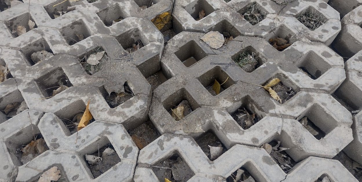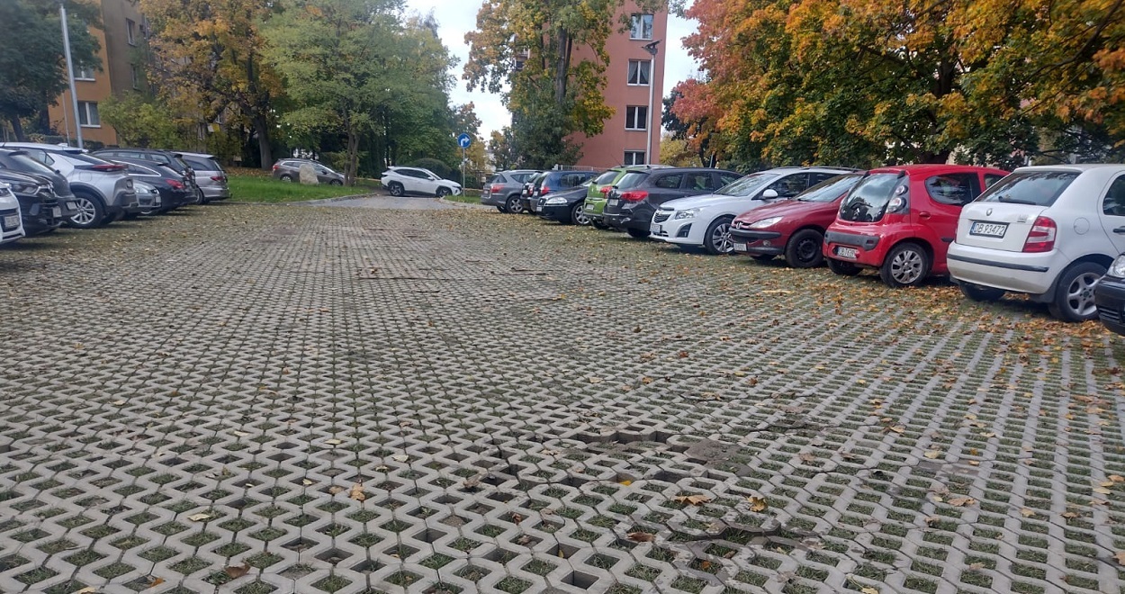 Mieszkańcy zgłaszają problemy z odwodnieniem parkingu przy Piaskowej Górze. Betonowe elementy osuwają się w błocie. Niektóre popękały.