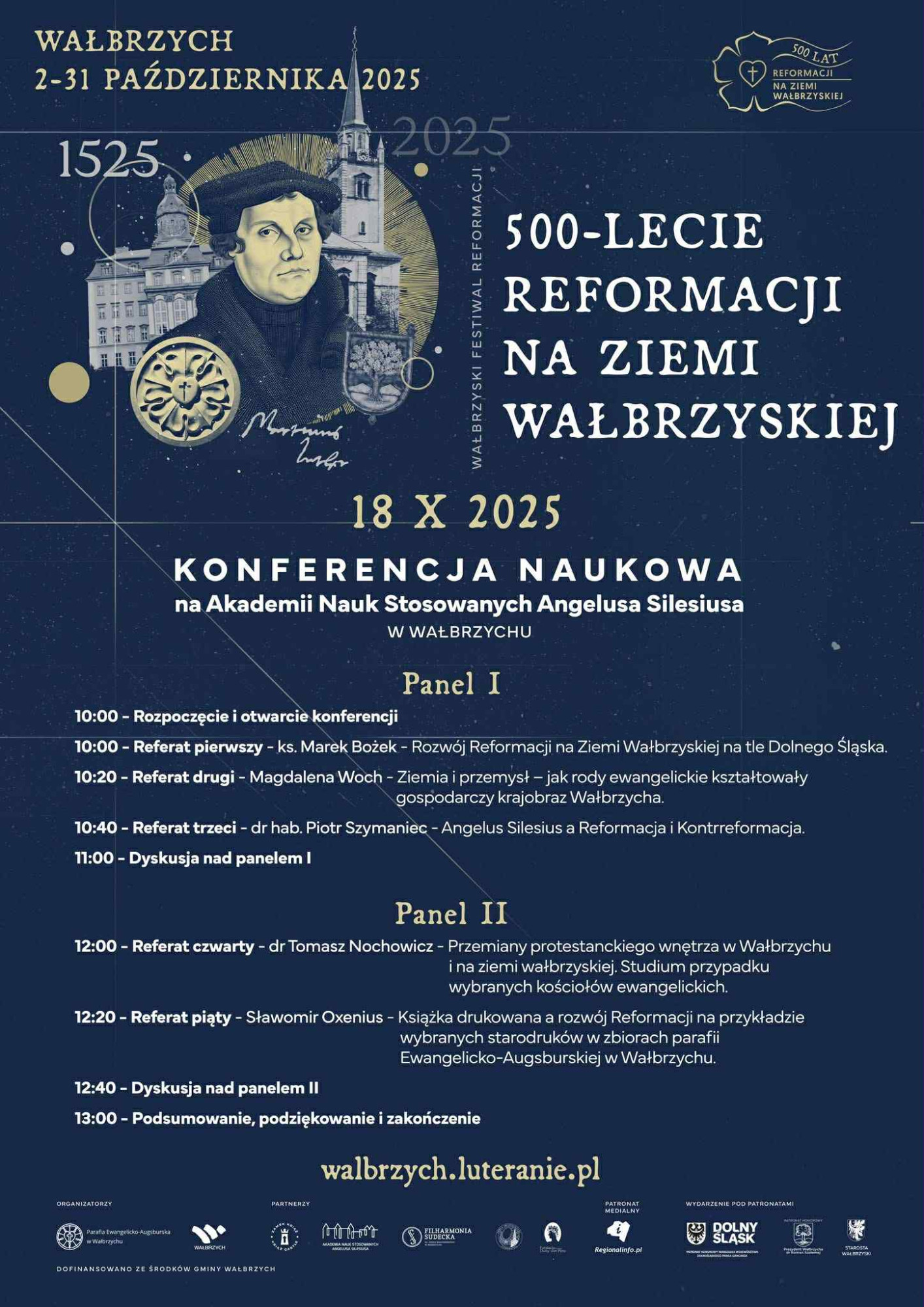 Wydarzenie upamiętnia pół tysiąclecia dziedzictwa Reformacji na Ziemi Wałbrzyskiej — czasu, który ukształtował duchowy, kulturowy i gospodarczy pejzaż naszego regionu.