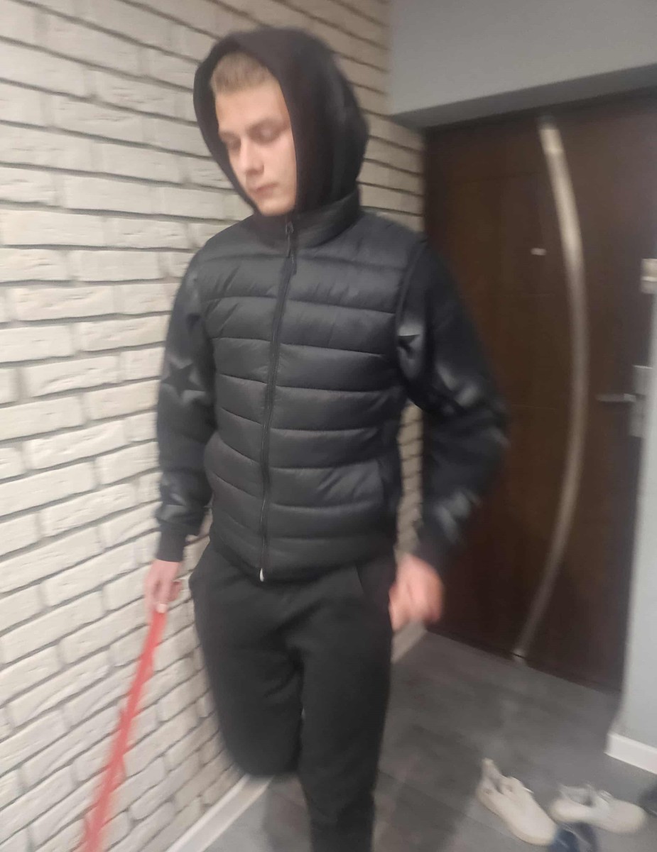 W chwili wyjścia z domu ubrany był w czarną kurtkę z białym napisem „pittbull”, białą bluzę z kapturem, czarne spodnie dresowe z białymi gwiazdkami na przedniej części spodni, białe wysokie buty typu „adidas”. Miał przy sobie również czarny plecak „PUMA”