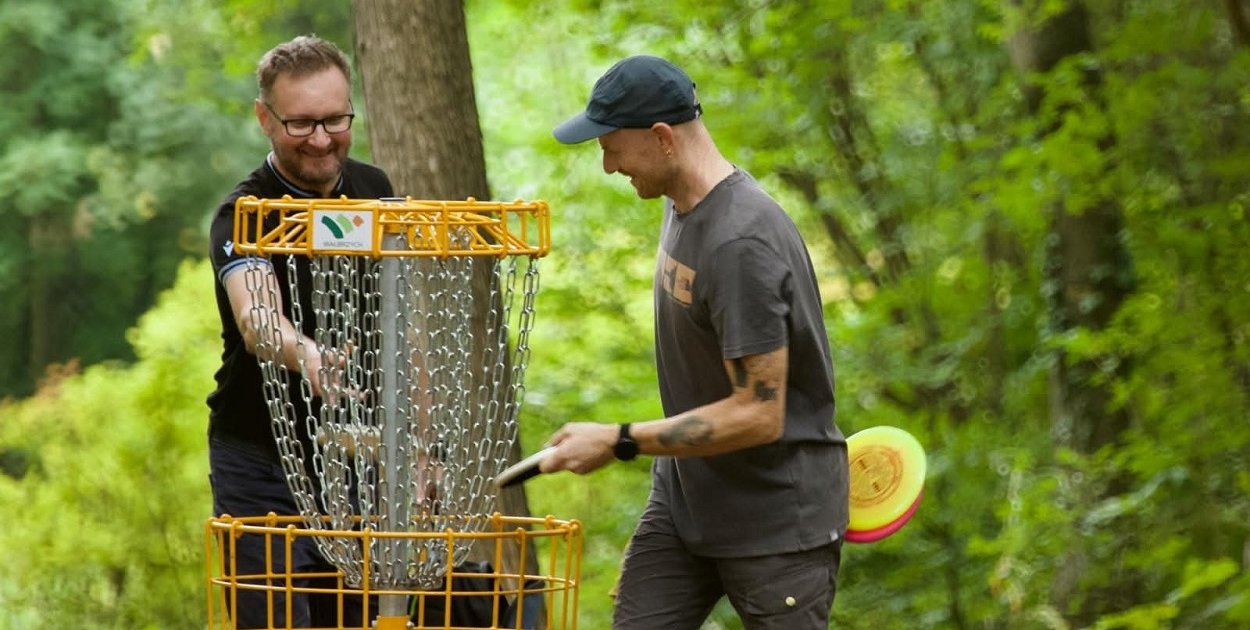 Disc Golf to dynamicznie rozwijająca się w naszym kraju dyscyplina sportowa, która łączy elementy tradycyjnego golfa z rzutami specjalnymi dyskami (podobnymi do frisbee). Zamiast piłeczki i kijów, zawodnicy używają dysków o różnych właściwościach aerodynamicznych, a celem gry jest trafienie do metalowego kosza z łańcuchami przy jak najmniejszej liczbie rzutów. Dyski są obecnie powszechnie dostępne a koszt zestawu startowego to około 100złotych. Zestaw taki umożliwia w 100% grę na całym polu.