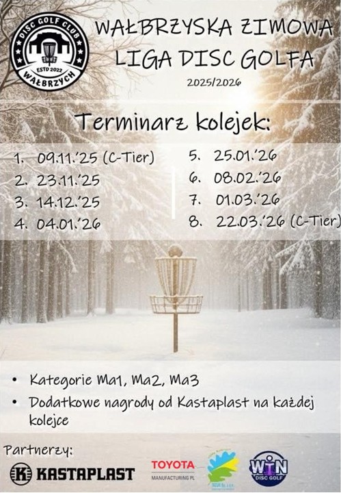 Disc Golf Club Wałbrzych zaprasza na Turniej otwierający Wałbrzyską Ligę Zimową 2025/2026.