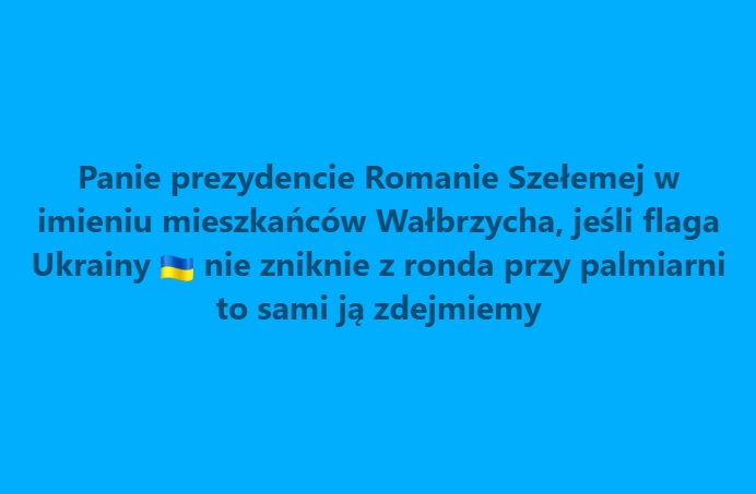 1 listopada flaga Ukrainy zniknęła z masztu. Na fb opublikowano nagranie, na którym widać maszt i flagę zjeżdżającą w dół. W tle słychać głos mężczyzny i dziecka, którzy komentują zdarzenie. To trzeci taki incydent w ciągu kilku miesięcy.