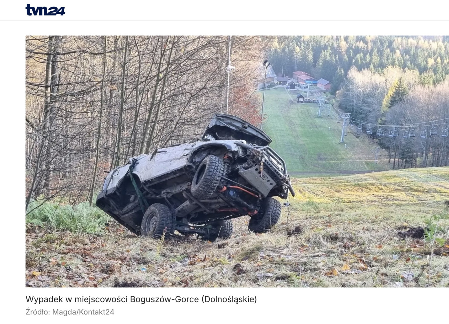 40-letni mężczyzna w Boguszowie-Gorcach próbował wjechać samochodem terenowym na Dzikowiec. Auto koziołkowało i stoczyło się około 200 metrów w dół zbocza. Poszkodowanego śmigłowcem zabrało Lotnicze Pogotowie Ratunkowe.