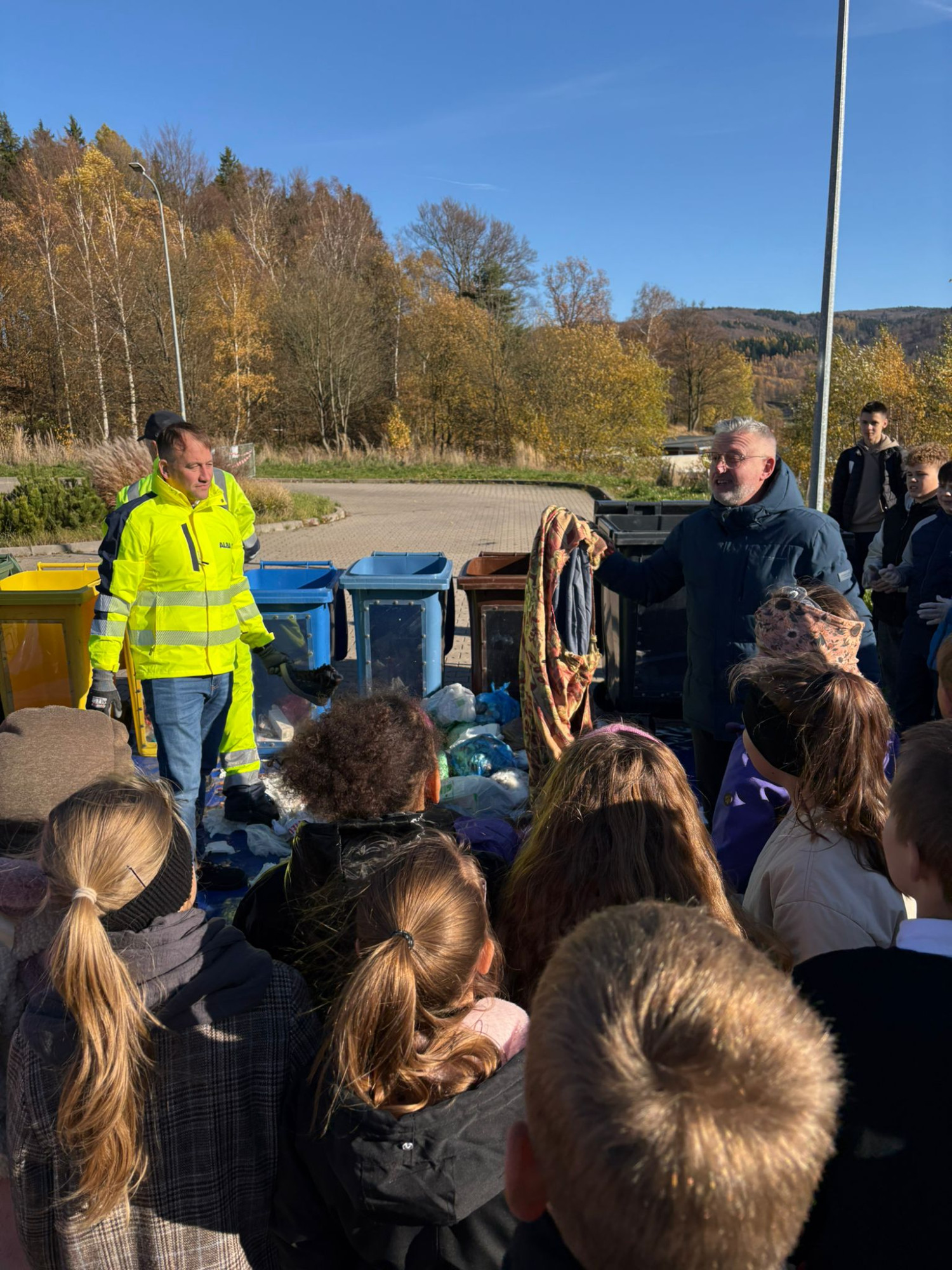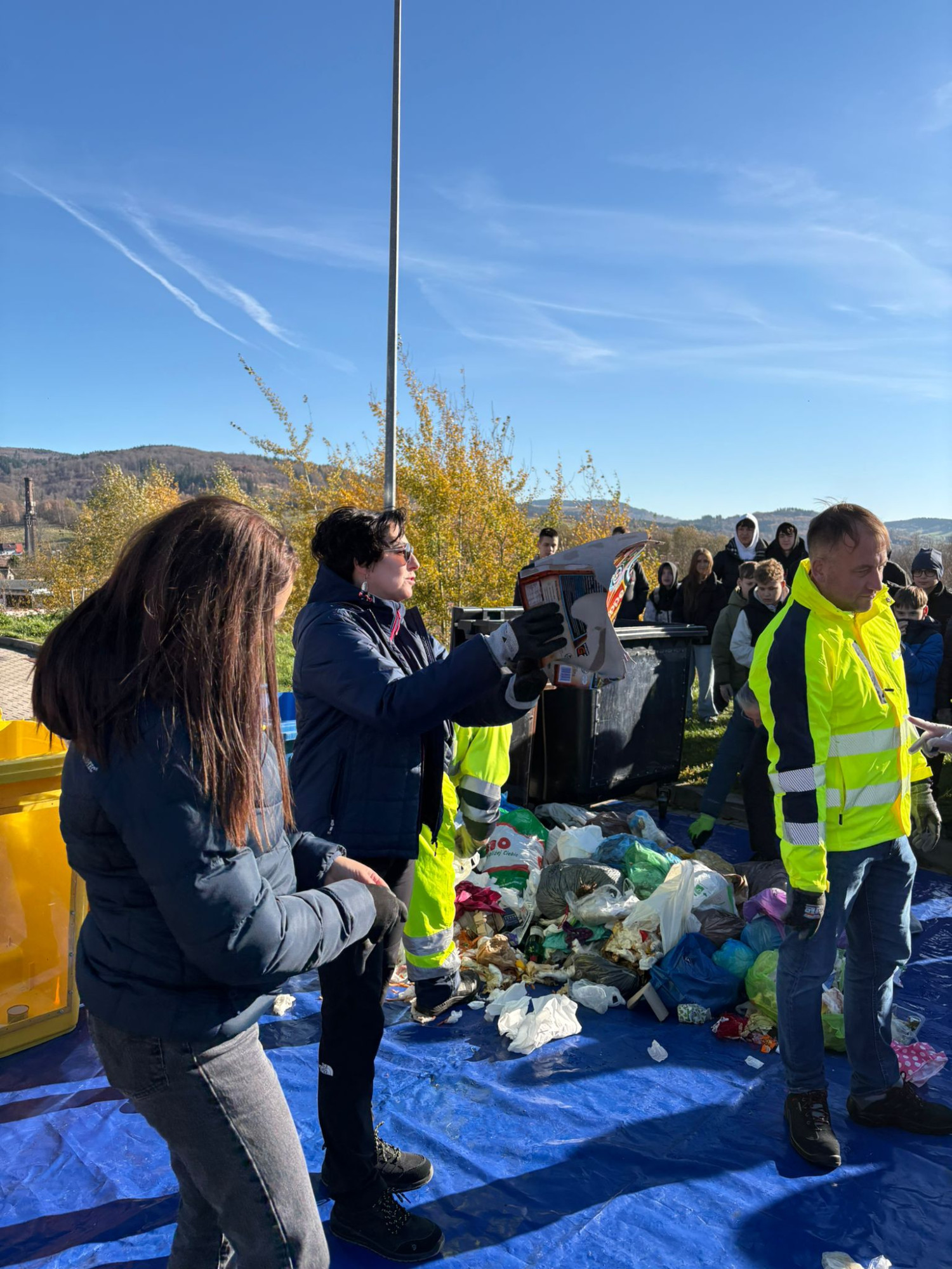 Spotkanie miało charakter praktycznego pokazu. Zamiast prezentacji i długich wyjaśnień, uczestnicy wspólnie przyglądali się zawartości rzeczywistego pojemnika na odpady zmieszane. Początkowo kosz był wypełniony w około 70%. Segregację przeprowadził Burmistrz Roman Głód wraz z Albą przy wsparciu dzieciaków-po przeprowadzeniu prawidłowej segregacji okazało się, że zdecydowana większość odpadów mogła trafić do pojemników na papier, szkło, metale i tworzywa sztuczne lub do bioodpadów. W czarnym pojemniku pozostała jedynie niewielka część odpadów – jedynie to, czego naprawdę nie da się posegregować.