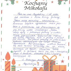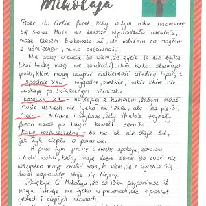 Na zachętę publikujemy kilka wybranych listów. Po więcej odsyłamy TUTAJ. Przed decyzją o stworzeniu prezentu, prosimy o kontakt z organizatorami pod nr 74 844 68 65 lub mailowo [email protected], aby upewnić się, czy ktoś już nie "zarezerwował" danego listu. Paczki powinny być dostarczone do 12 grudnia 2025 do DS "Rusninowa" ul. Osiedle Górnicze 19a w Wałbrzychu. Uroczyste wręczenie paczek zaplanowano na 18 grudnia. Jeśli nie jesteś w stanie dostarczyć paczki osobiście, możesz wpłacić środki na nr konta 98 1090 2590 0000 0001 3202 2314.