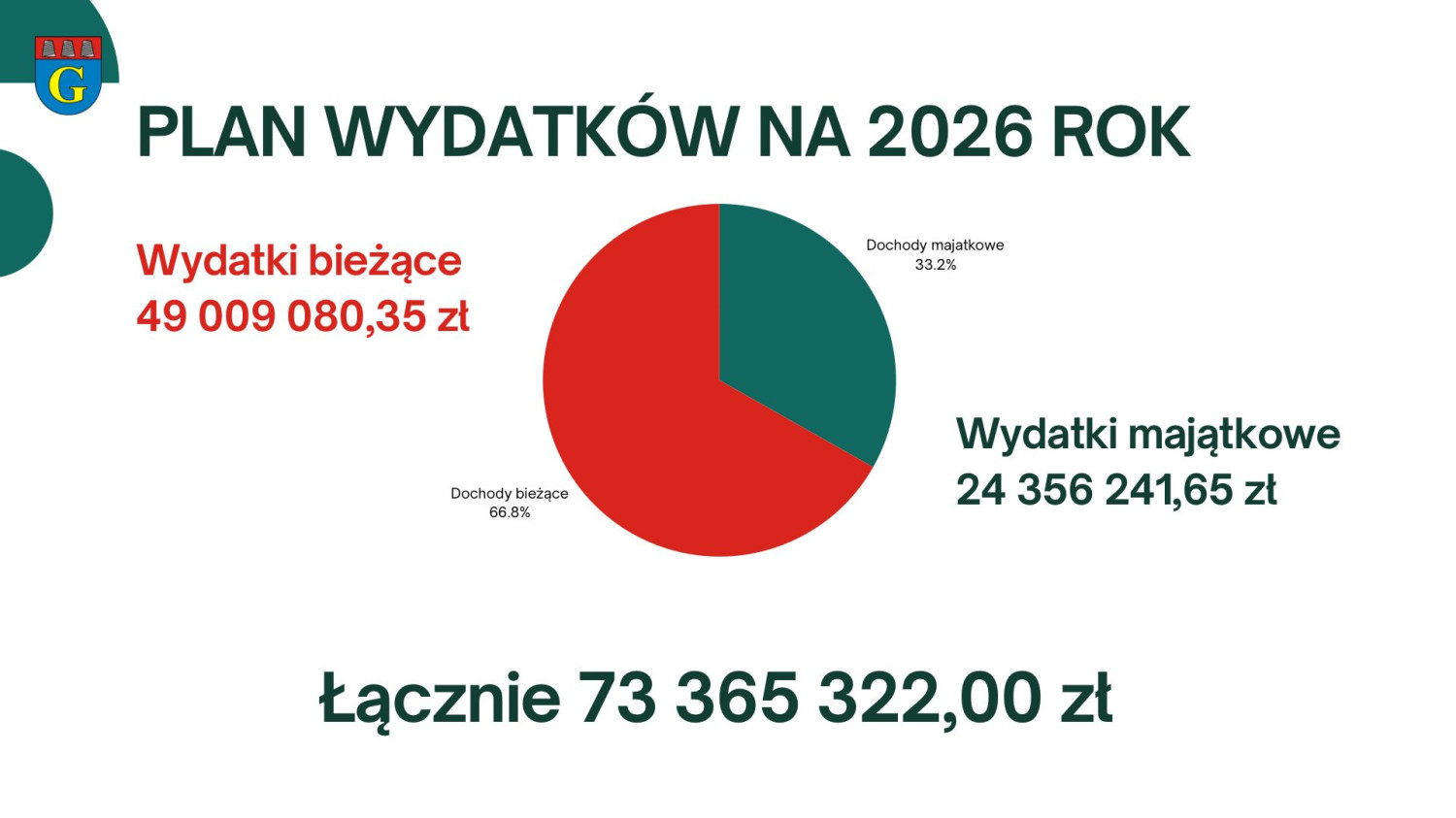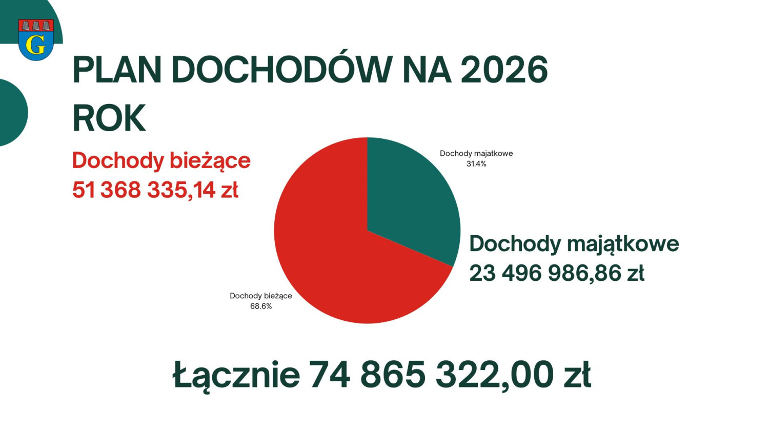 Budżet na 2026 rok zakłada dochody na poziomie 74 865 322 zł oraz wydatki w wysokości 73 365 322 zł. Aż 33 procent tej kwoty, czyli 24 356 241,65 zł, przeznaczono na inwestycje. Środki te pozwolą zrealizować szereg przedsięwzięć ważnych dla jakości życia w Głuszycy i jak mówi Roman Głód – w nadchodzącym roku przyciągną kolejnych ludzi szukających miejsca dobrego do życia.