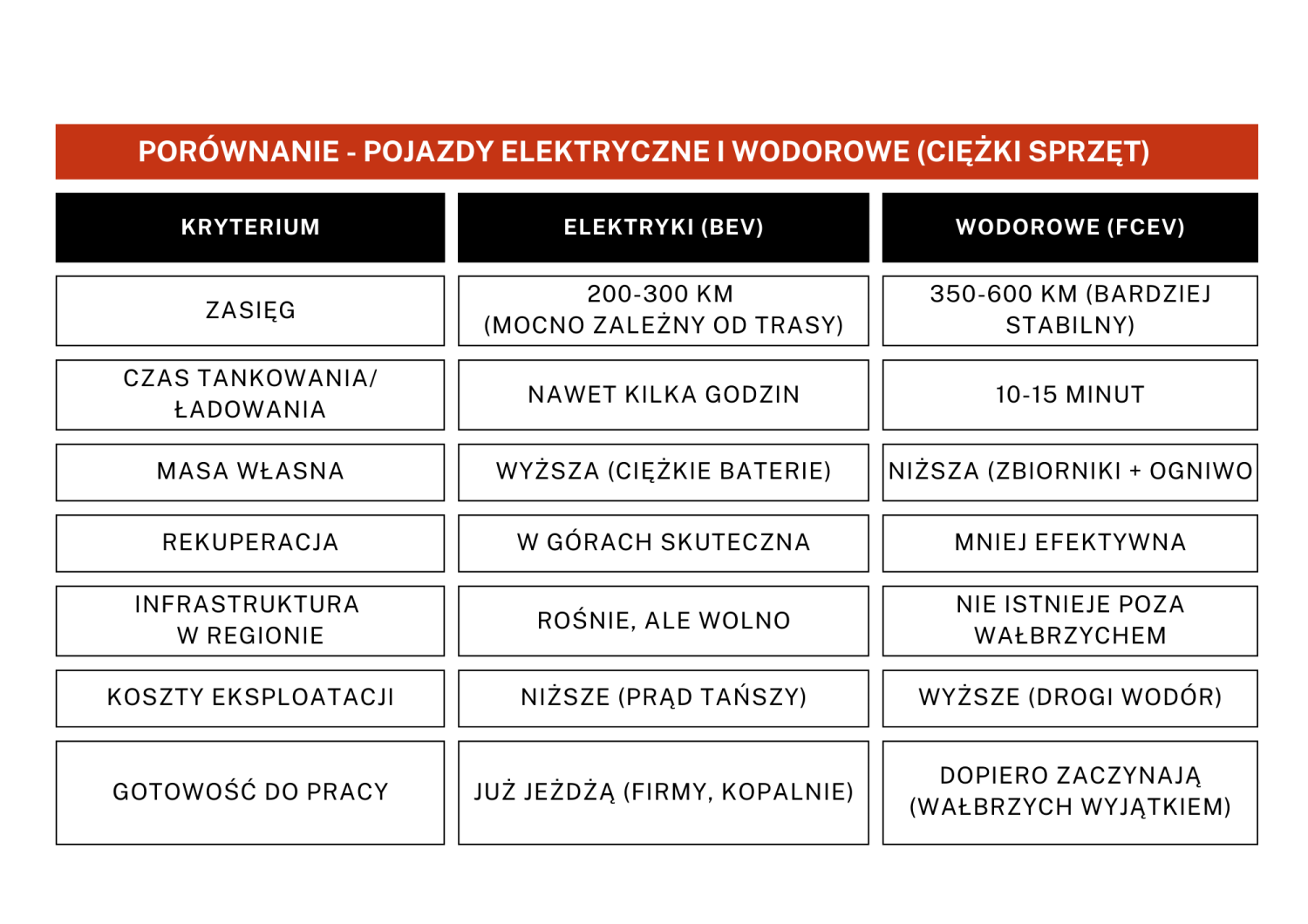 Wniosek? Dla przemysłu i lokalnej logistyki w górach – elektryki są dziś bardziej praktyczne. Dla komunikacji miejskiej i tras, gdzie liczy się ciągłość pracy – wodór pokazuje pazur.