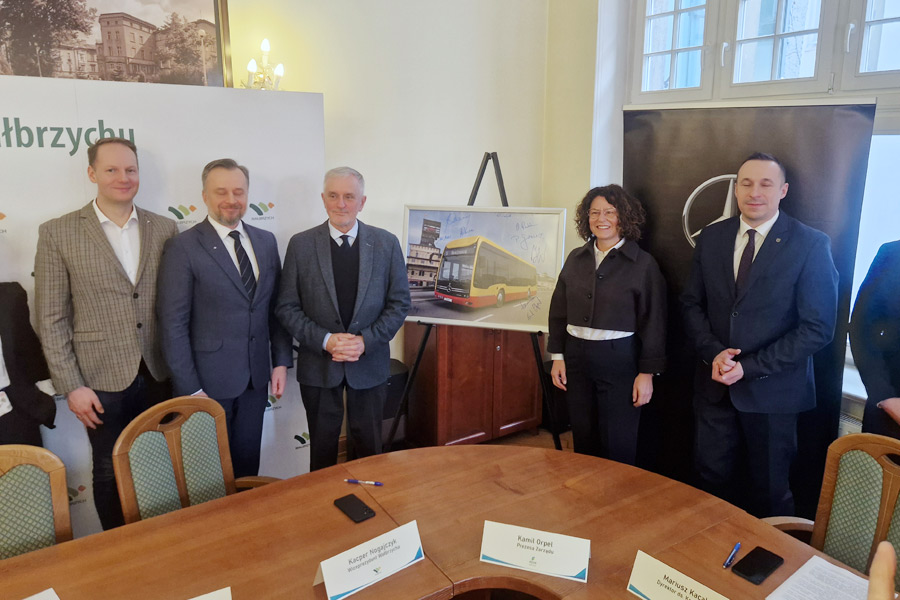 Gmina Wałbrzych podpisała umowę z firmą Daimler Buses Polska na zakup 14 fabrycznie nowych autobusów wodorowych Mercedes eCitaro Fuel Cell. Wartość kontraktu przekracza 57,8 mln zł brutto i jest kolejnym krokiem w realizacji strategii rozwoju zeroemisyjnego transportu publicznego w mieście.