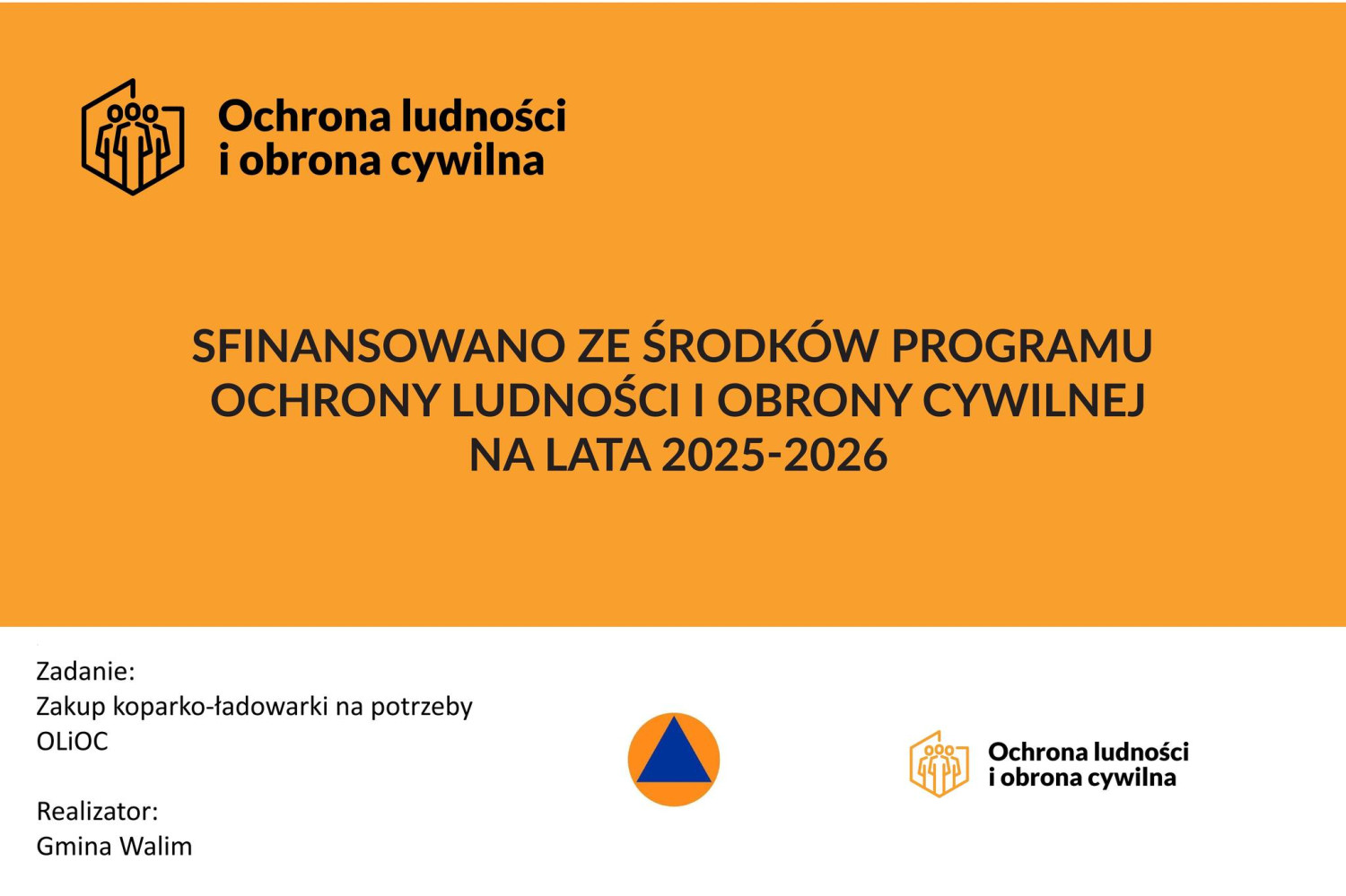 W końcówce 2025 roku do parku maszynowego Gminy Walim dołączyła nowoczesna koparko-ładowarka JCB 3CX (model z 2026 r.). Zakup sfinansowano w ramach rządowego Programu Ochrony Ludności i Obrony Cywilnej na lata 2025–2026. Całkowita wartość inwestycji wyniosła 494 214 zł, z czego aż 429 576,78 zł (ok. 86,9%) pochodziło z dotacji