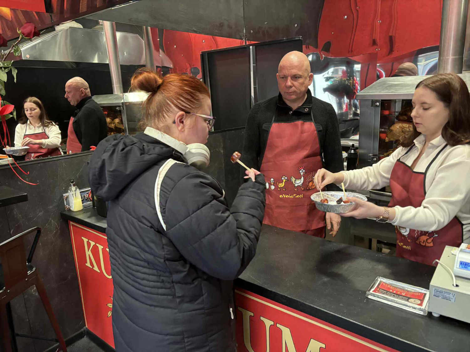 Kurczak jest dokładnie taki, jak pamiętamy – chrupiący z zewnątrz, soczysty w środku i zawsze gorący prosto z rożna.