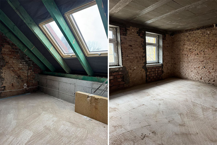 W ramach zadania powstaje 18 mieszkań komunalnych o powierzchni od 30 do 70 m². Budynki przechodzą kompleksową modernizację – od prac konstrukcyjnych i wymiany instalacji, po wdrożenie nowoczesnych rozwiązań energetycznych. Montowane są panele fotowoltaiczne oraz pompy ciepła, co przełoży się na niższe koszty eksploatacji i wyższy komfort użytkowania.