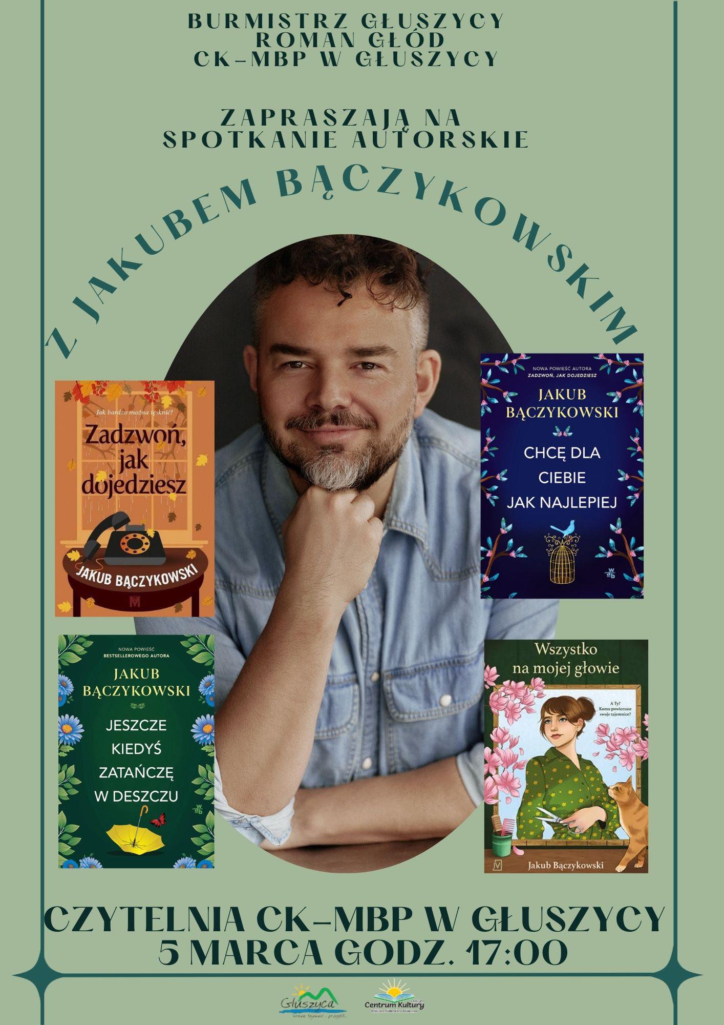 - 5 marca 2026 r. o godz. 17:00 odbędzie się spotkanie autorskie z Jakubem Bączykowskim – autorem powieści obyczajowych, znanym czytelnikom m.in. z książek „Zadzwoń, jak dojedziesz”, „Jeszcze kiedyś zatańczę w deszczu” czy „Wszystko na mojej głowie”.
