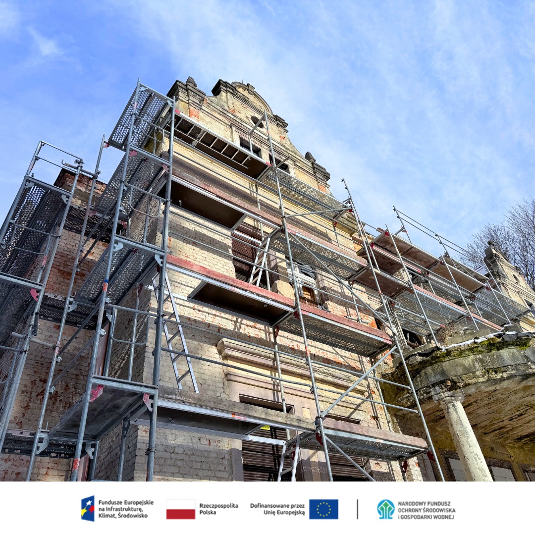 Równie intensywnie postępują prace na elewacji. Stare tynki są starannie odbijane, a wszystkie gzymsy, obramowania okienne i dekoracyjne detale dokładnie zabezpieczane. Każdy fragment fasady pozostaje pod stałą kontrolą konserwatorów – priorytetem jest zachowanie autentycznego, historycznego charakteru willi.