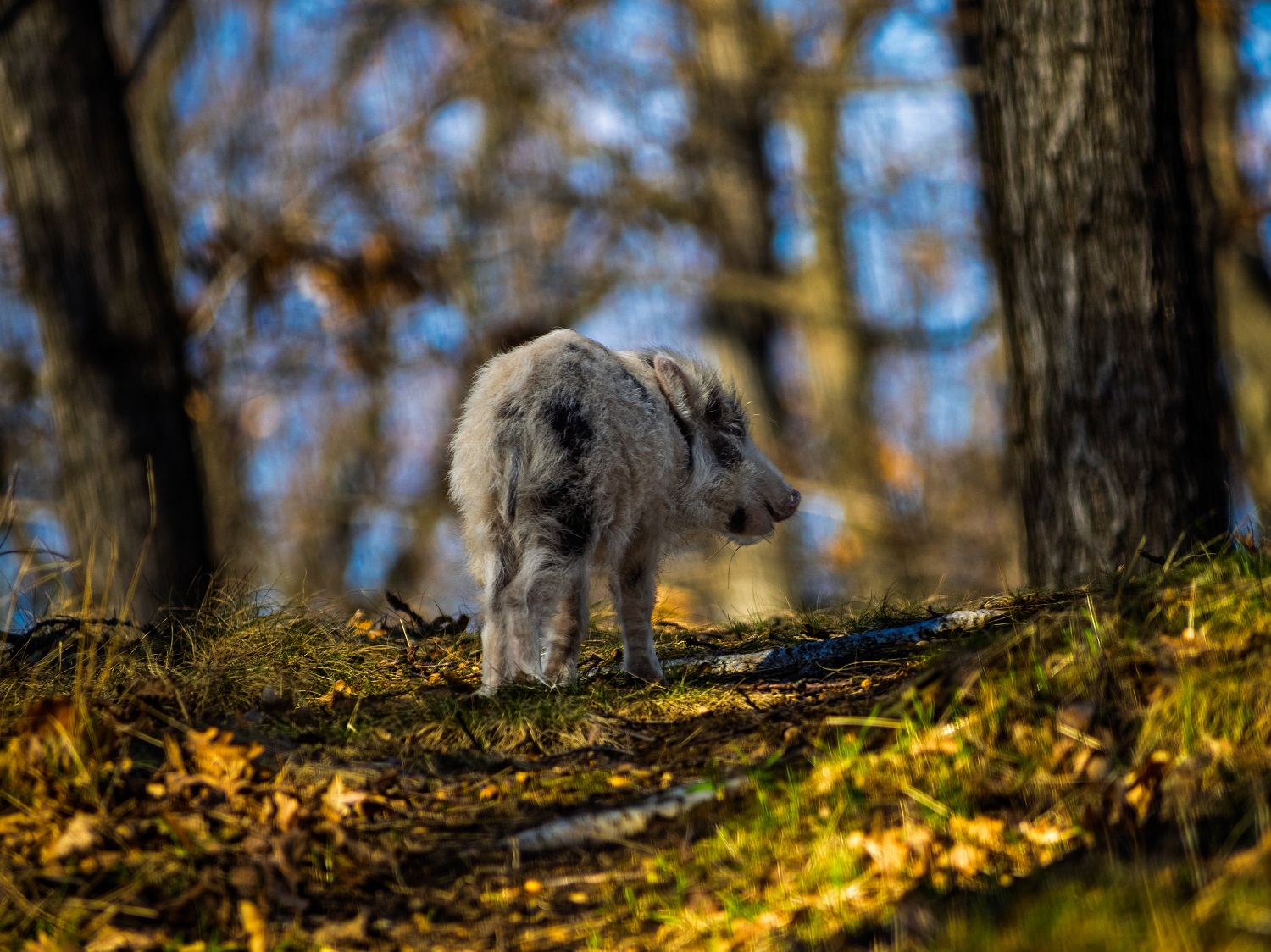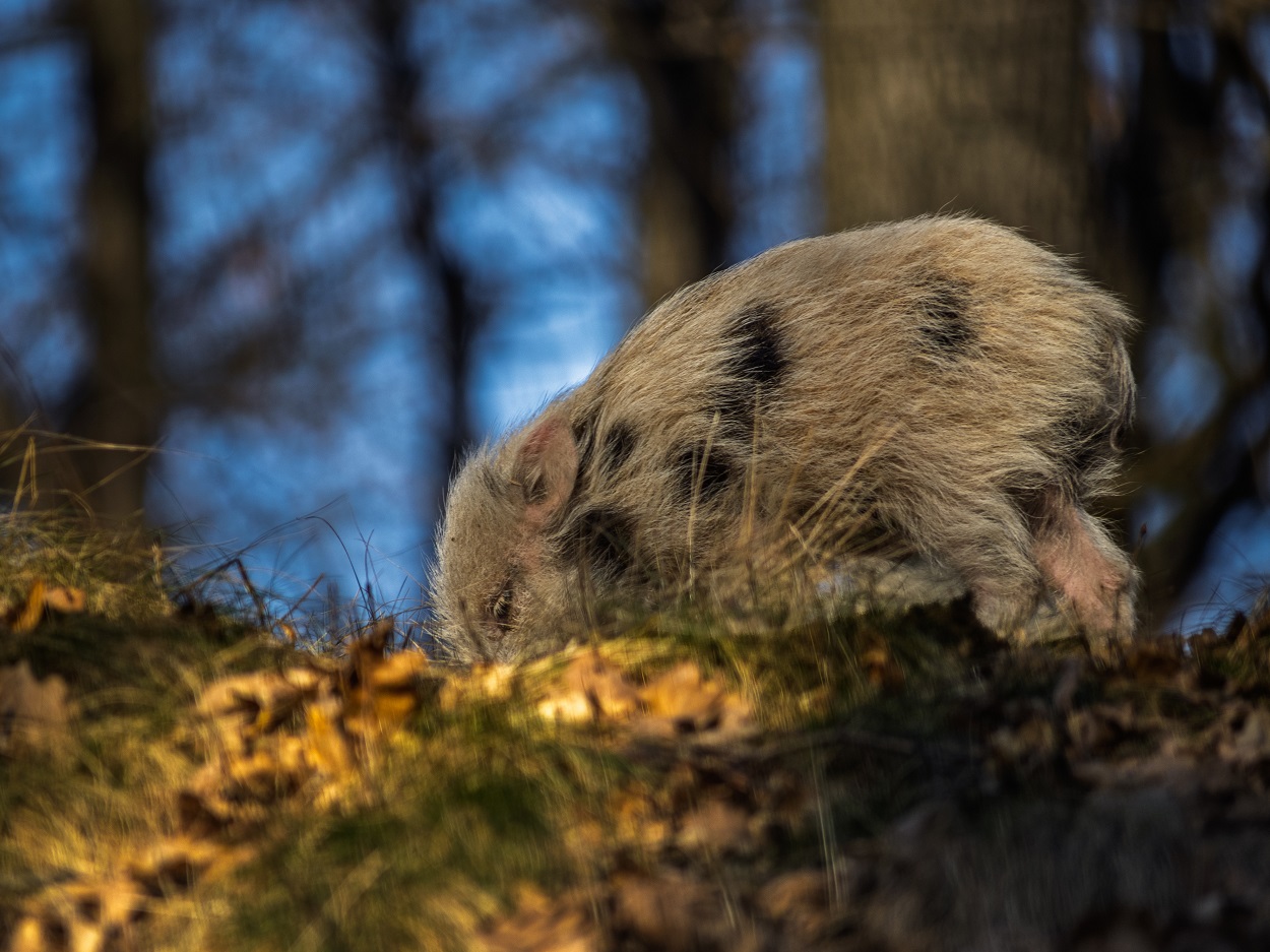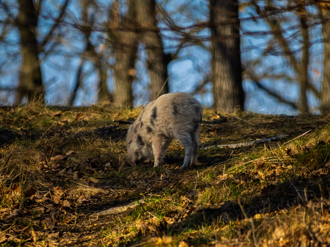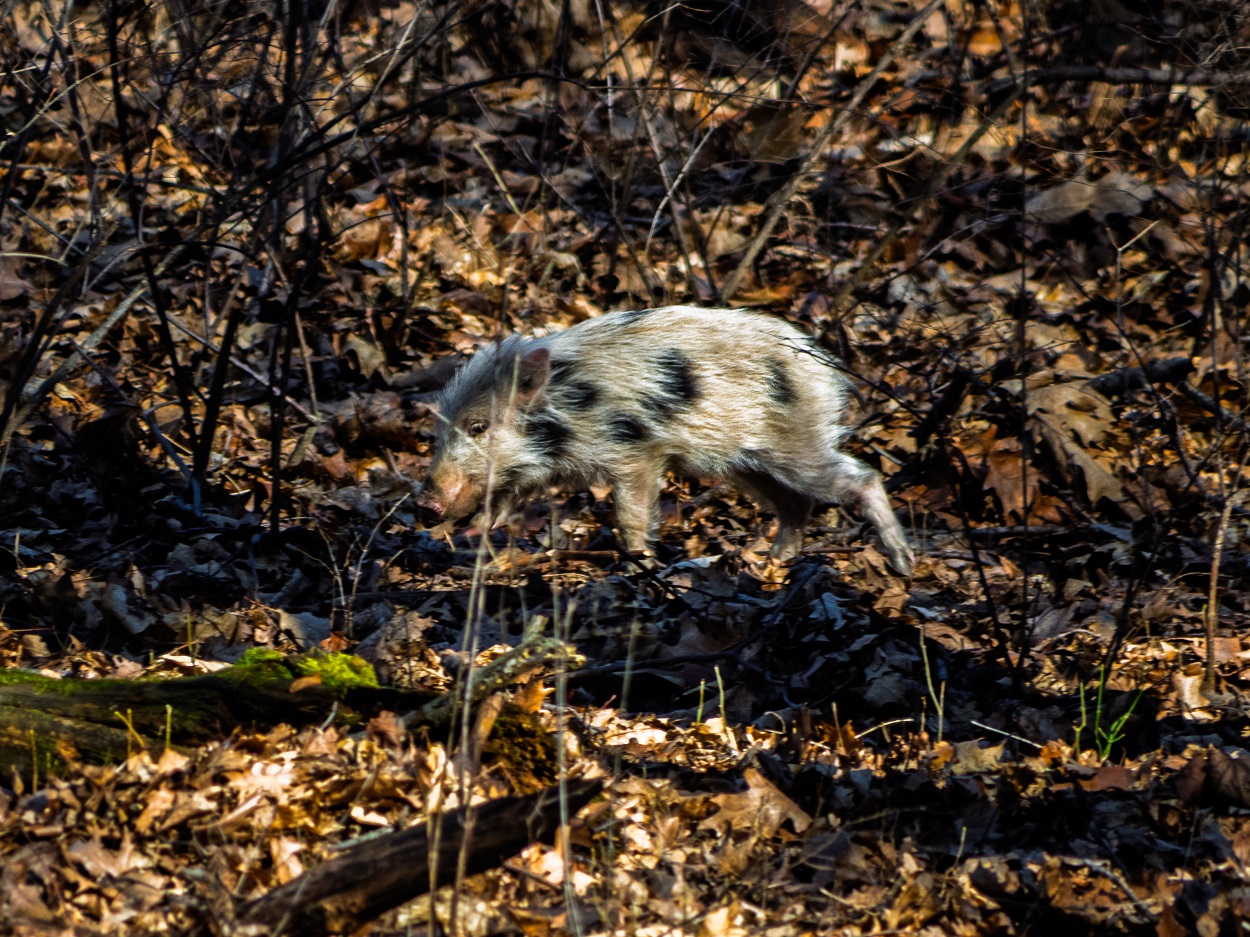 W Książańskim Parku Krajobrazowym udało się uwiecznić młodego dzika o całkowicie nietypowym umaszczeniu.