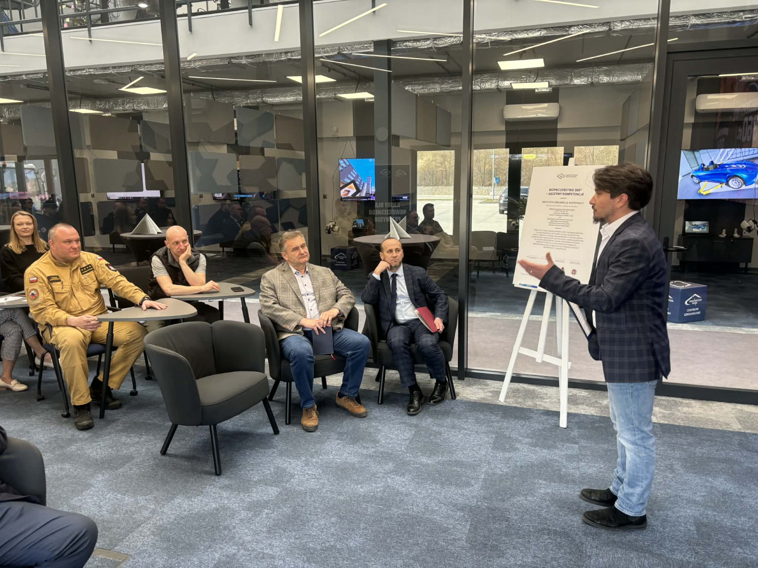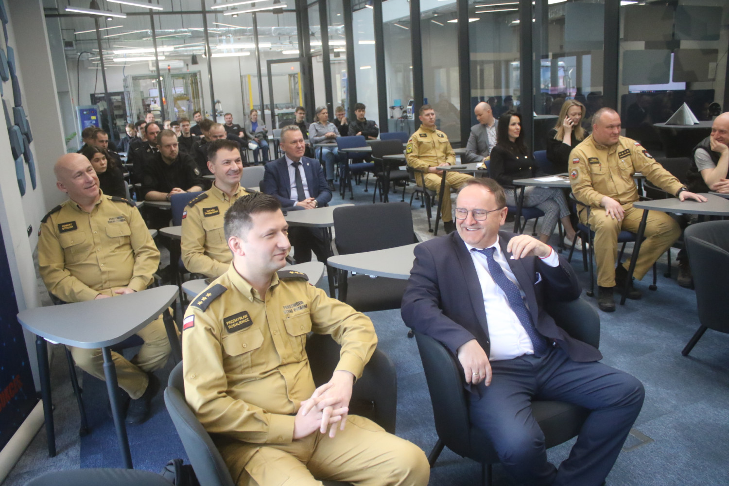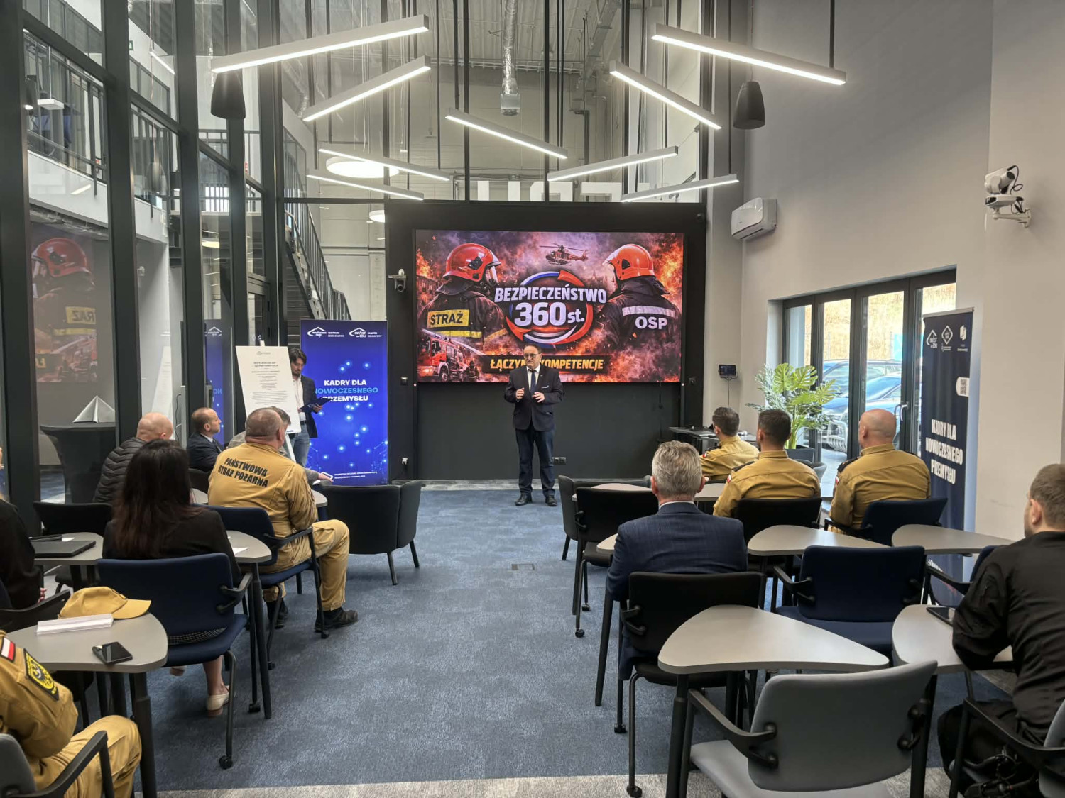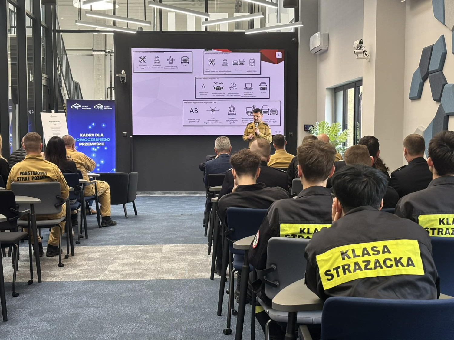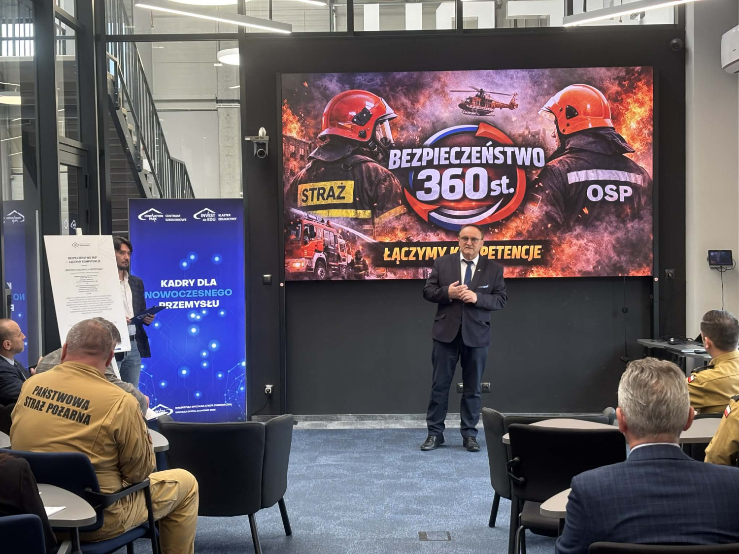 Wiceprezes podkreślił, że zaproszenie przyjęły zarówno Państwowa Straż Pożarna, jak i Ochotnicza Straż Pożarna oraz klasy strażackie. Głównym elementem konferencji była prezentacja możliwości szkoleniowych Innovation Park, ze szczególnym uwzględnieniem szkoleń dronowych.„Szkoleniowe głównie chodzi tutaj właśnie o szkolenia dronowe, które w szerokim zakresie… to jest tak zwana ogólnie penetracja terenu, czy też również tak zwana pomoc, chociażby na wyższych piętrach poprzez drony, które mogą dostarczyć maski przeciwgazowe” – wyjaśnił wiceprezes.