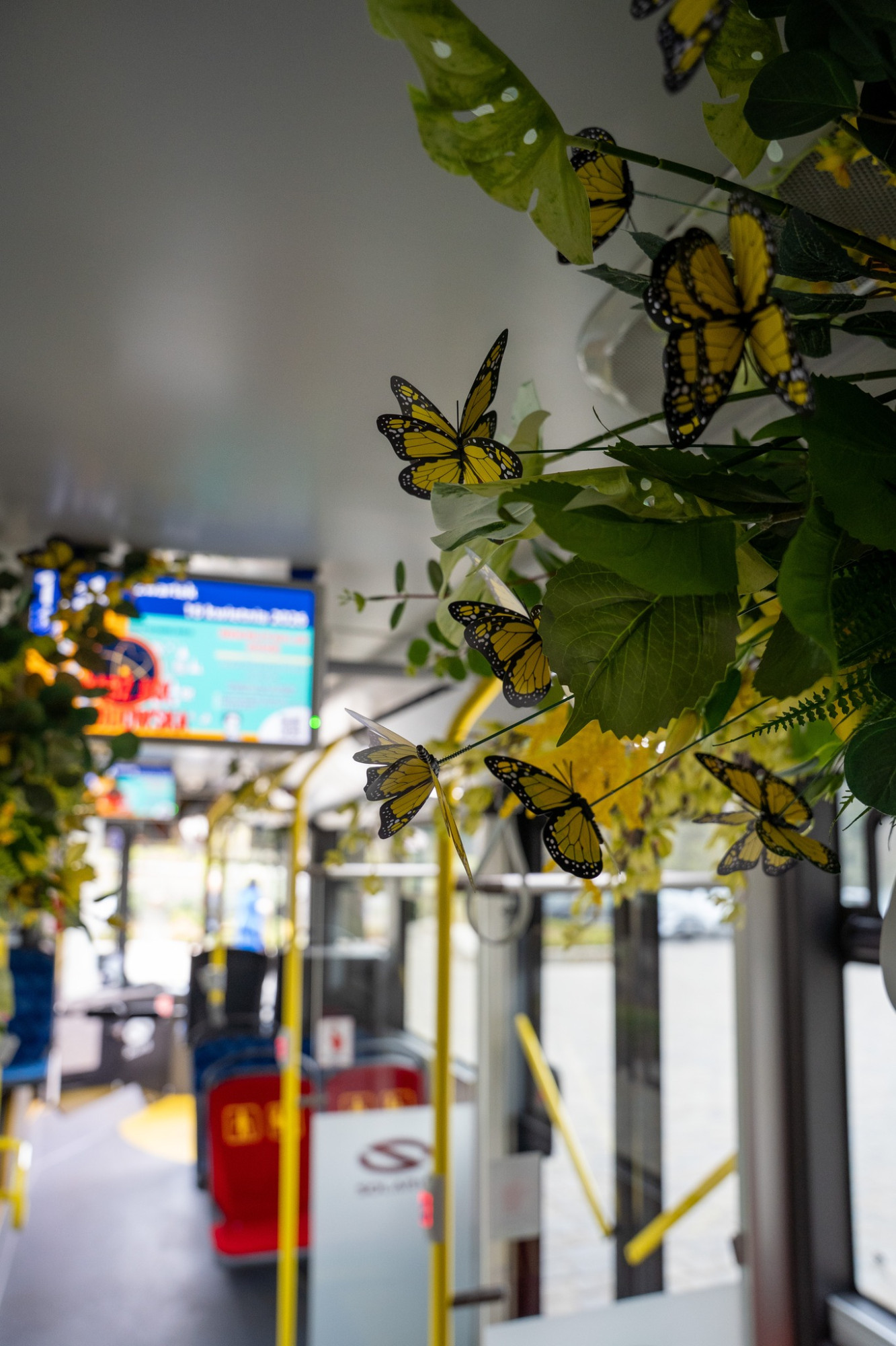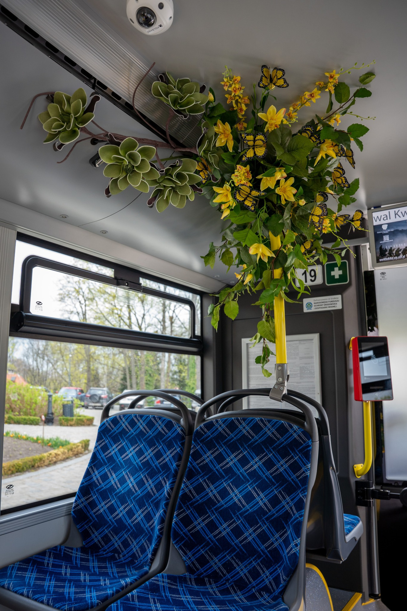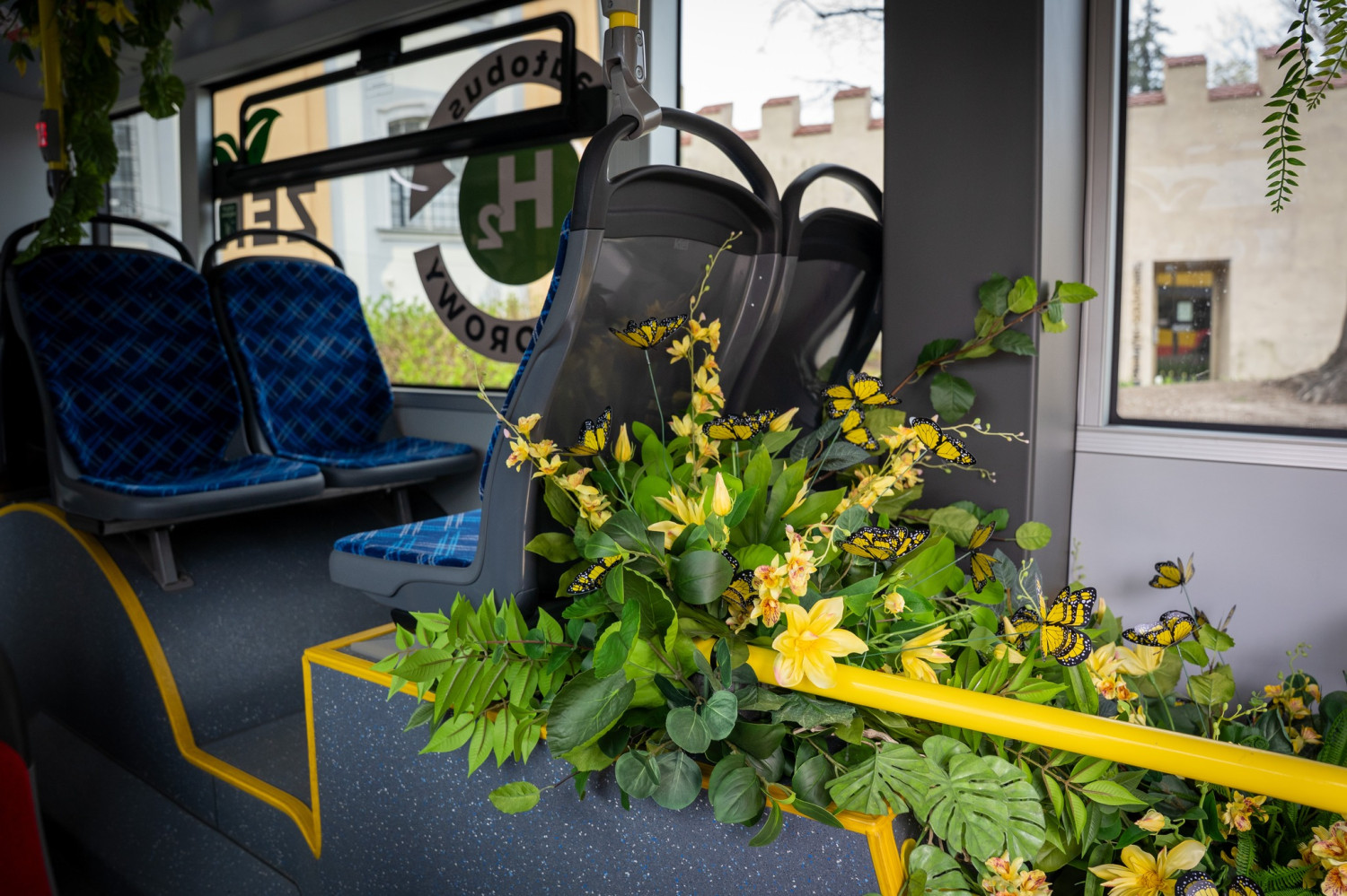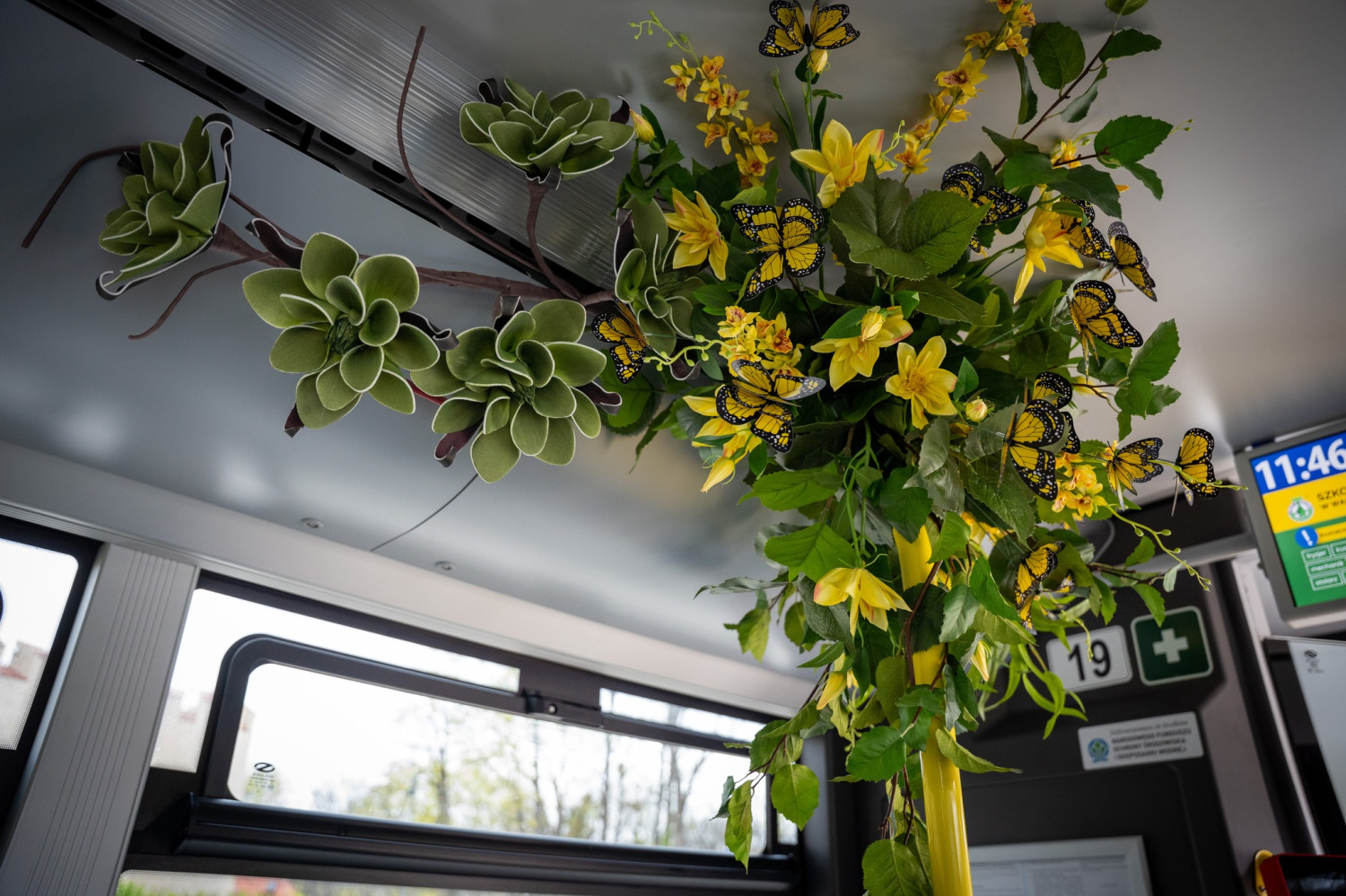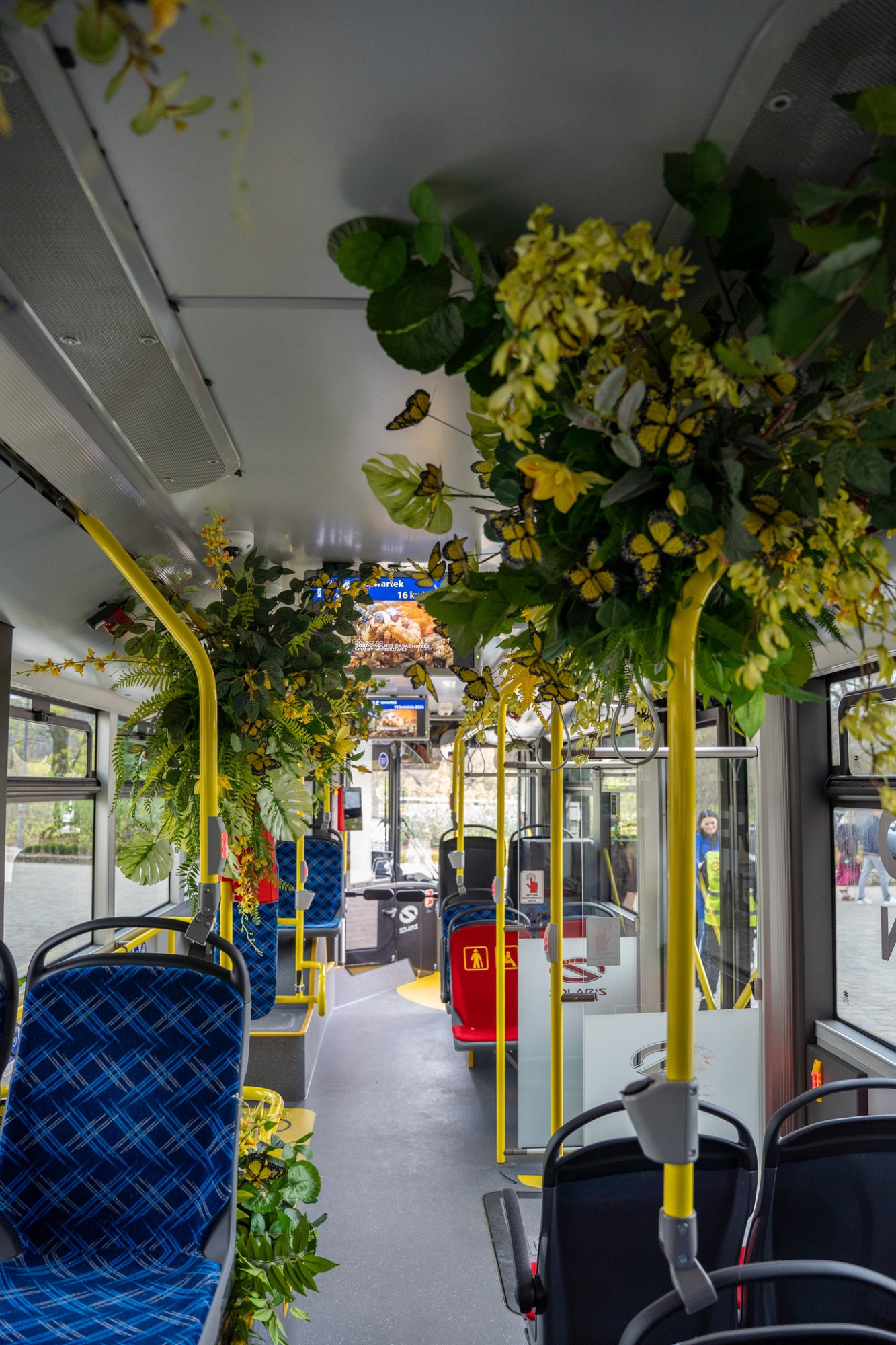Autobus ozdobiony został przez zespół Macieja Krzusa z Mistrzowskiej Szkoły Florystyki. Wnętrze i zewnętrzne partie pojazdu wypełniają energetyczne, wiosenne kompozycje florystyczne w pełnej gamie kolorów.