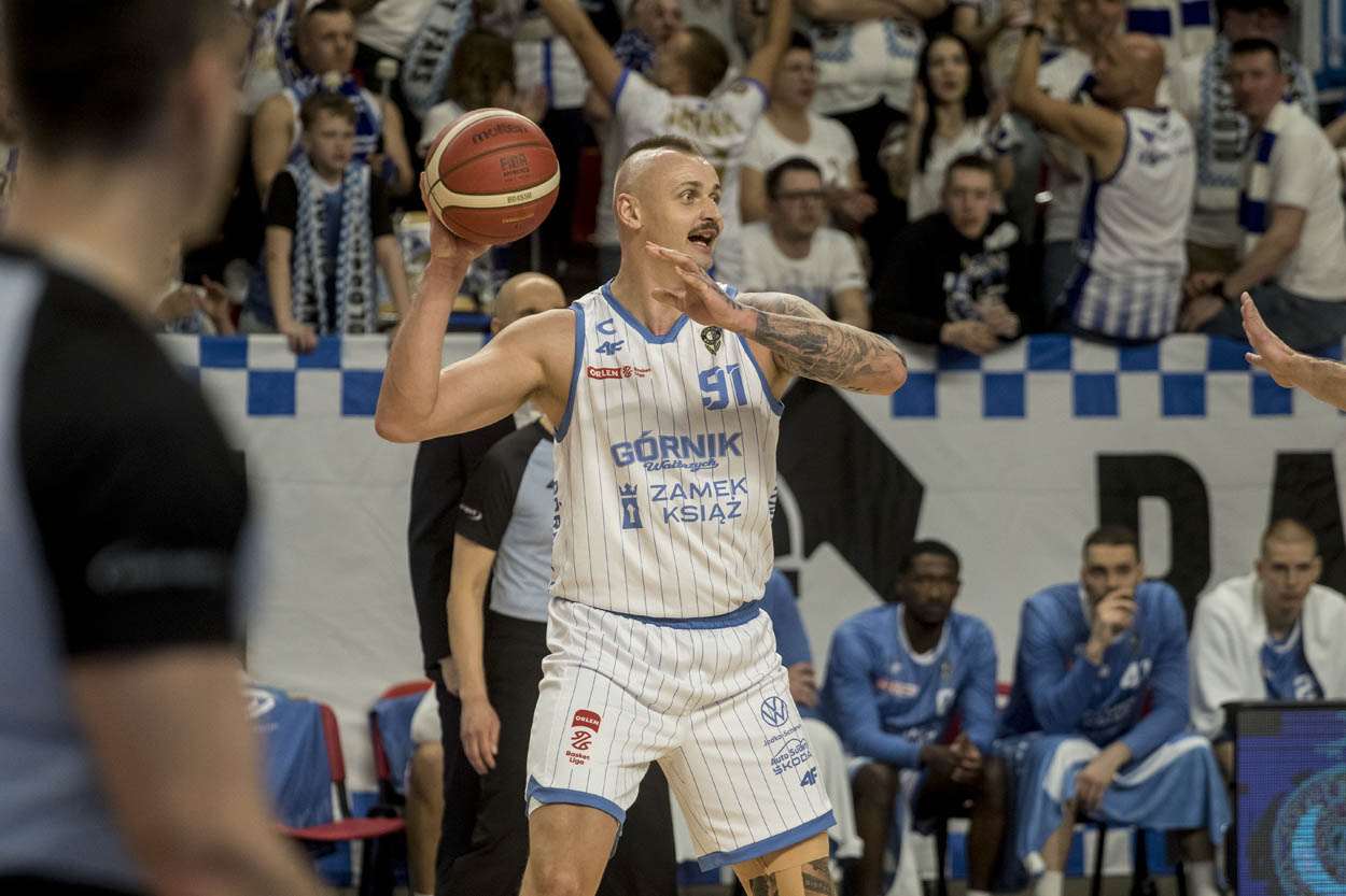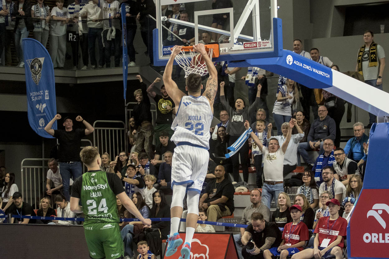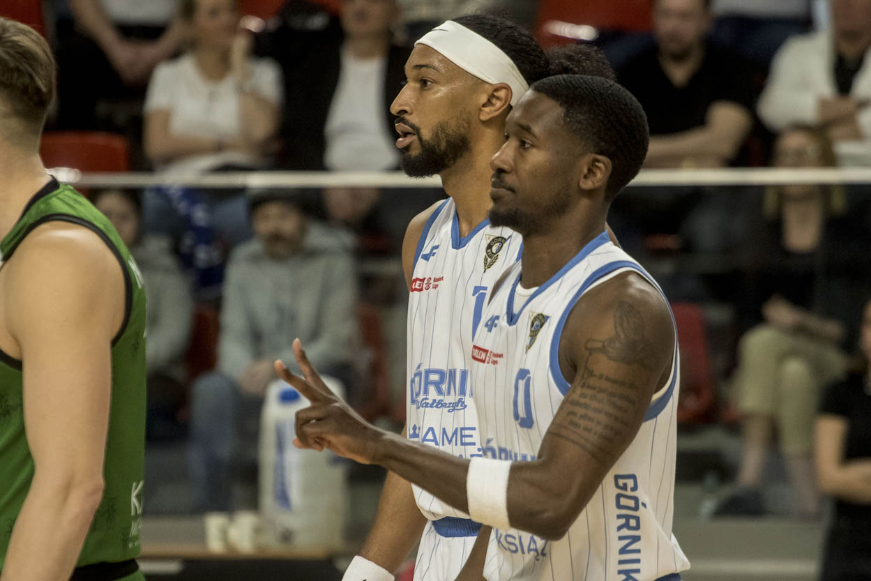 Wałbrzyszanie nie pozwolili jednak rywalom odskoczyć na dobre. Impuls do odrabiania strat dał Avery Anderson, a kolejne trafienia Lovella Cabbila szybko zmniejszyły różnicę do jednego punktu. Chwilę później Tauras Jogela doprowadził do wyrównania i pierwsza połowa zakończyła się remisem 40:40.