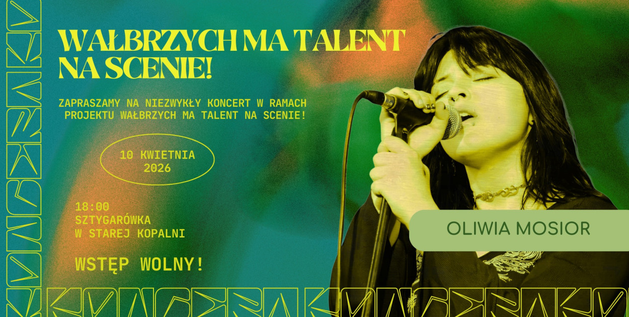 Już 10 kwietnia o godz. 18:00 zapraszamy na wyjątkowy wieczór muzyczny w Kawiarni Sztygarówka w Starej Kopalni w Wałbrzychu. Na scenie wystąpi 18-letnia Oliwia Mosior, młoda wokalistka, która zachwyciła publiczność swoją wrażliwością i talentem podczas konkursu „Wałbrzych ma Talent”, docierając aż do finału.