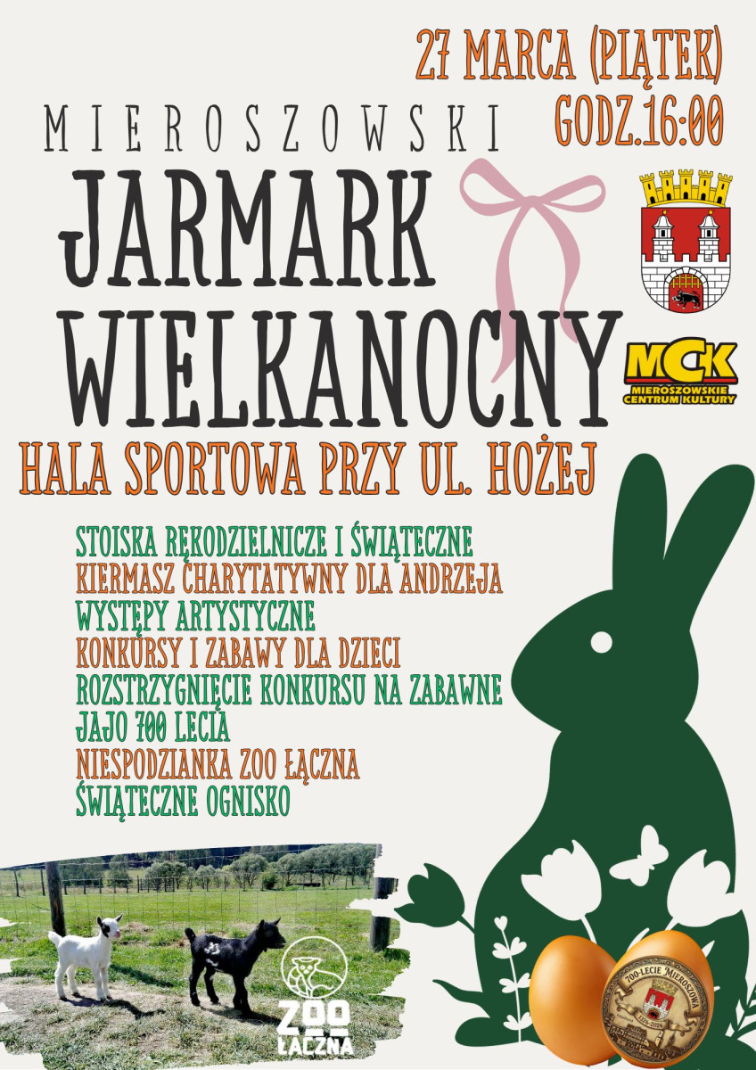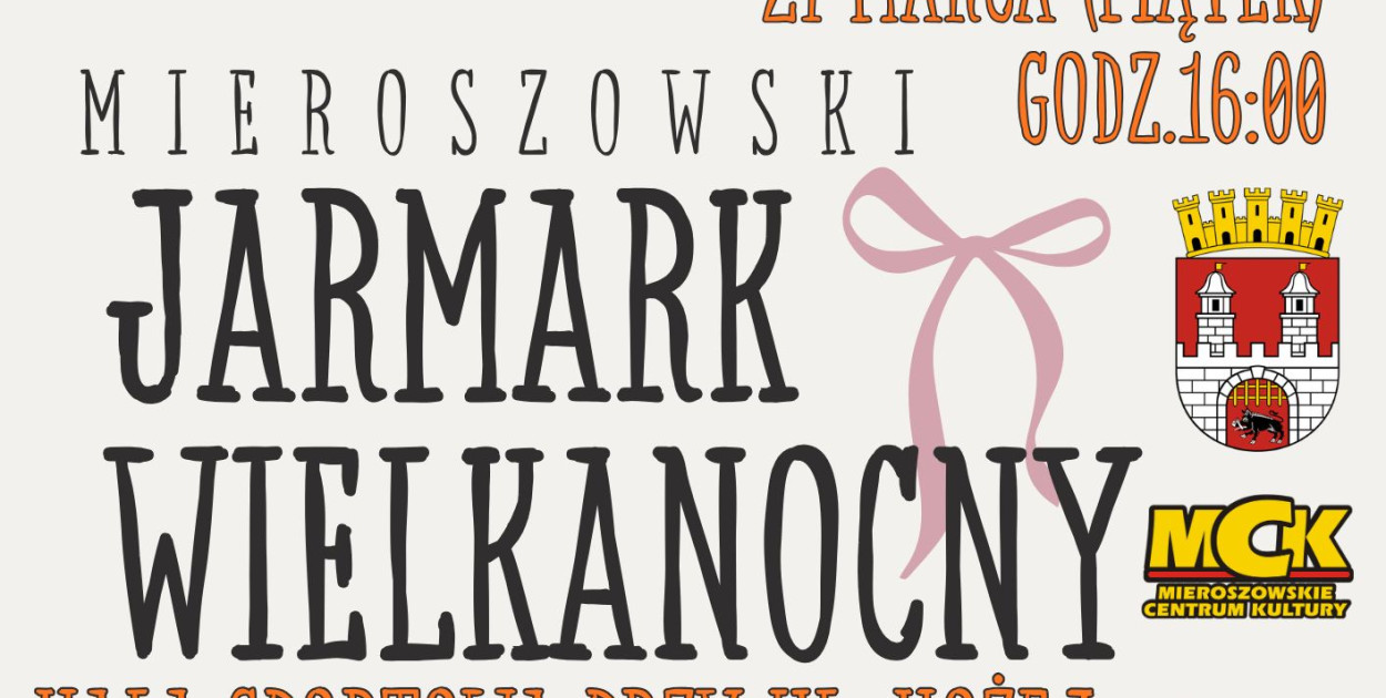 Już w najbliższy piątek, zapraszamy na tradycyjny Jarmark Wielkanocny, który w tym roku wpisuje się w wyjątkowe obchody 700-lecia Mieroszowa!