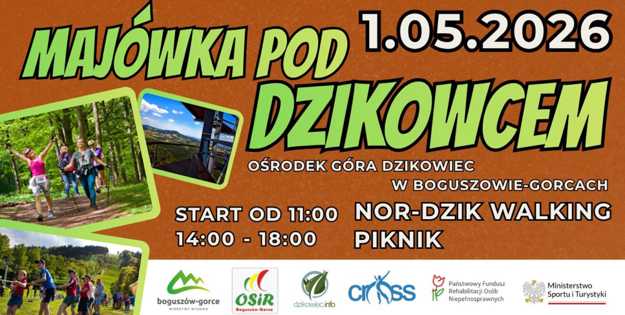 1 maja 2026 r. zaczniemy ZAWODAMI NOR-DZIK WALKING na trzech dystansach: 4,5 km; 9 km i 13,5 km.