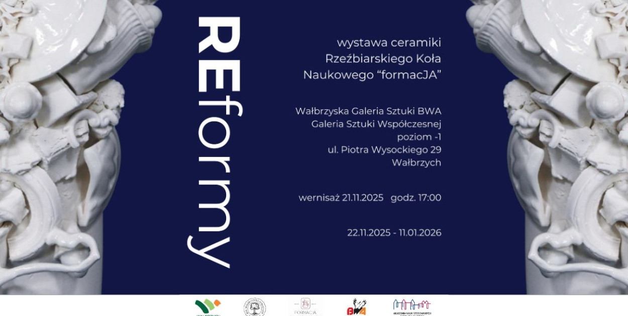 Zapraszamy na otwarcie wystawy „REFORMY” – RZEŹBIARSKIEGO KOŁA NAUKOWEGO FORMACJA AKADEMII NAUK STOSOWANYCH ANGELUSA SILESIUSA w piątek 21 listopada 2025 na godzinę 17.00 do WGS BWA, Galerii Sztuki Współczesnej (poziom -1), przy ul. Wysockiego 29.