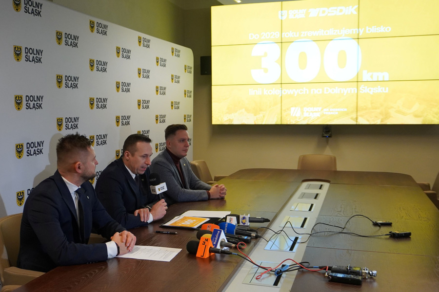 Rewitalizacja nieczynnych linii, przywracanie połączeń kolejowych i rekordowe nakłady inwestycyjne – to główne założenia programu „Dolny Śląsk na dobrych torach", który zaprezentowano podczas konferencji prasowej z udziałem Marszałka Województwa Dolnośląskiego Pawła Gancarza, wicemarszałka Michała Rado oraz Mateusza Masłowskiego - dyrektora Dolnośląskiej Służby Dróg i Kolei. W ciągu najbliższych lat samorząd planuje oddać do użytku blisko 300 kilometrów zmodernizowanych linii kolejowych.