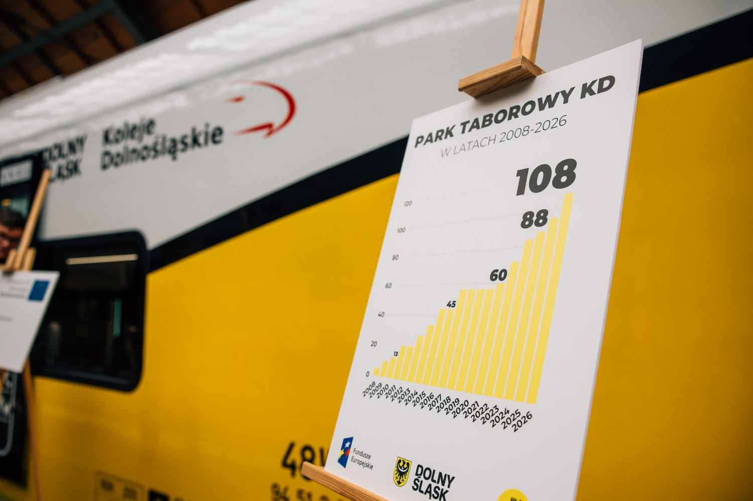 Łącznie Unia Europejska przeznaczyła na rozwój kolei na Dolnym Śląsku ponad 1,6 miliarda złotych. Dzięki temu już pod koniec 2026 roku Koleje Dolnośląskie będą dysponowały flotą aż 108 pociągów, z których 101 zostało zakupionych przy wsparciu funduszy europejskich.