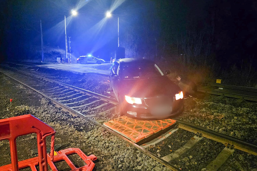 Policjanci z Kamiennej Góry w nocy z czwartku na piątek przed godziną 4 obsługiwali zdarzenie na zamkniętym przejeździe kolejowym w Marciszowie. 39-letni kierujący zignorował zakaz ruchu w obu kierunkach i postanowił, że pokona remontowany przejazd swoim samochodem. Konsekwencją tego pomysłu było zawiśnięcie na torach i wstrzymany ruch pociągów na tej trasie.