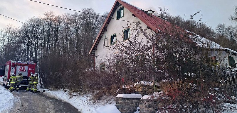 Pożar domu mieszkalnego w miejscowości Czarnów (pow. kamiennogórski). W budynku byli ludzie, ale zdążyli się ewakuować przed przyjazdem strażaków.