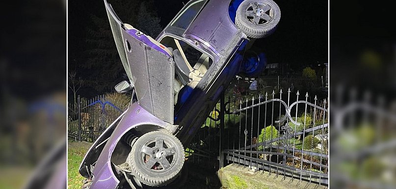 Nadmierna prędkość była przyczyną groźnie wyglądającego wypadku w miejscowości Ogorzelec w powiecie kamiennogórskim. Choć auto zaparkowało niemal w pozycji pionowej, nikomu nic poważnego się nie stało.